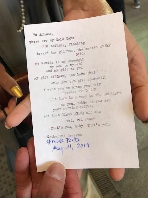 This was far from the only time that someone cried when interacting with the #PridePoets project. I witnessed dozens of people break into tears when receiving poems from the various #PridePoets.